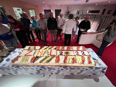 De laatste avond werd op gang getrapt met een feestelijk diner: chips en cola als apƩritief gevolgd door frietjes en hamburgers. Als klap op de vuurpijl kregen we nog een gigantische taart als dessert voorgeschoteld. Nadat we eerder deze week een kei tot een bergtrolletje pimpten, pimpten we deze keer onszelf. Er stond immers een heuse hotelkelderfuif op het programma.
